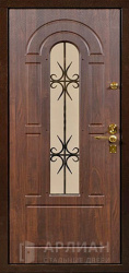 Входная дверь с ковкой и стеклом №414
