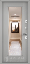 Входная белая дверь с зеркальной вставкой №97