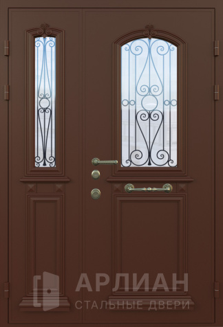 Двустворчатая входная дверь со стеклопакетом №18
